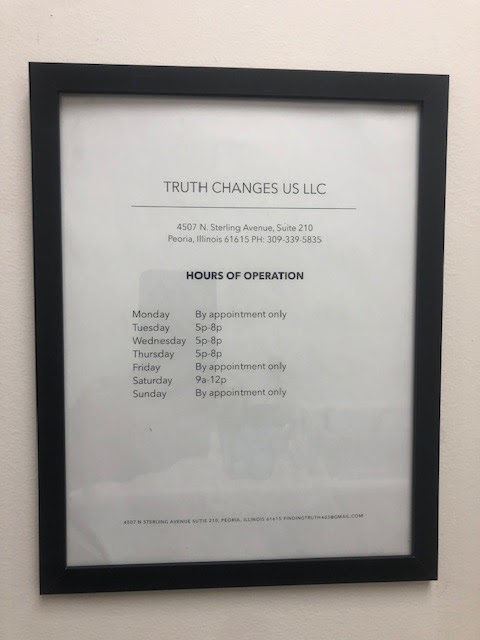 Truth Changes Us is a substance abuse treatment center for people seeking treatment near Peoria County. As part of their treatment modalities for recovery, Truth Changes Us provides cognitive behavioral therapy, telemedicine/telehealth therapy, and substance use disorder counseling during treatment. Truth Changes Us is located in Peoria, Illinois, accepting cash or self-payment for treatment.